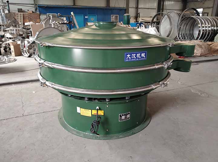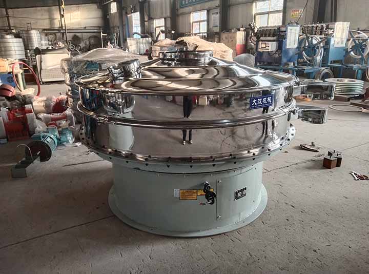 圆振动筛的筛面倾斜结构,运动轨迹为圆形,圆振动筛的筛分粒度范围多为5-200mm,型号如 DH-800、DH-1000、DH-1200等,适用于中粗颗粒物料的筛分,如砂石生产线中的分级作业。