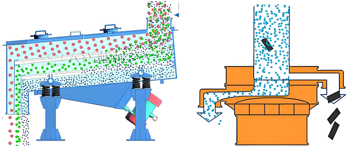 大型振动筛设备厂家制造设备时根据物料特性综合考虑。不同物料的粒度范围、含水量、堆比重、形状及磨蚀性会直接影响筛分效果。 粒度越细、含水量越高的物料越容易堵网,因此对于湿黏性物料,可选择带有防堵网结构或自动清网装置的机型,如超声波清网系统或弹跳球清网结构。堆比重较大的矿石或砂石需选用结构加固的重型直线筛或矿用振动筛;而粮食、饲料类物料适合选用轻型或粮食振动筛设备,以避免破碎。石灰石等磨蚀性强的物料可选耐磨钢板或聚氨酯筛网。